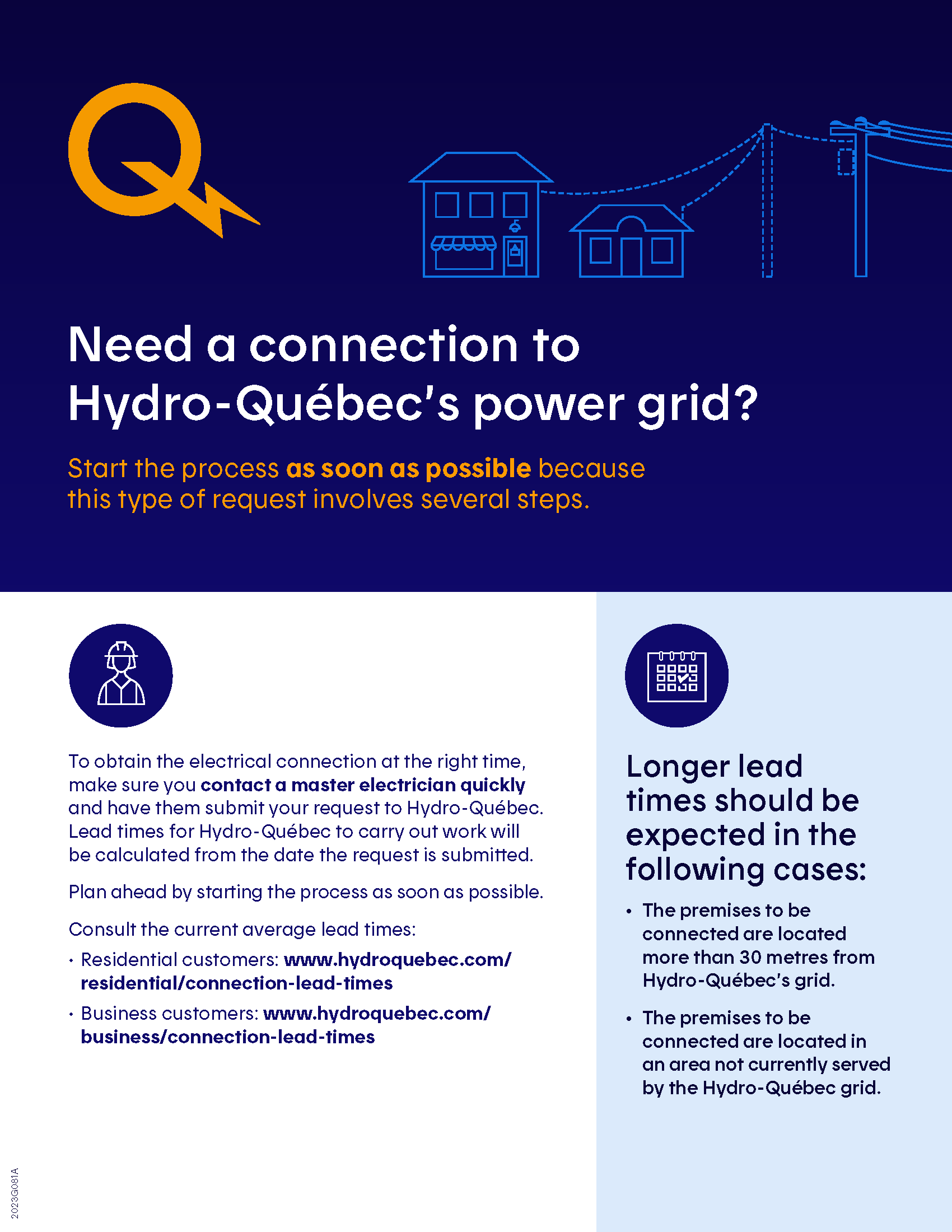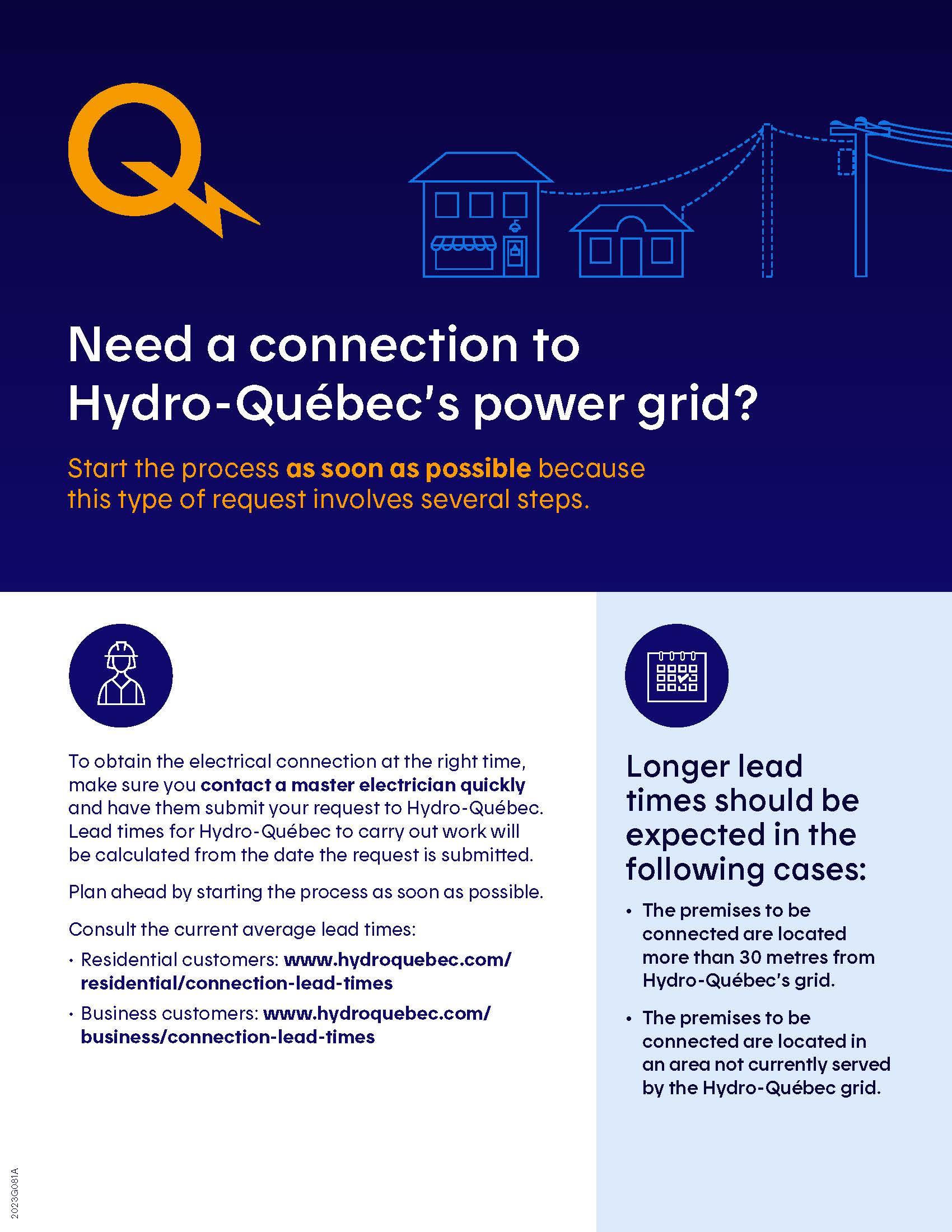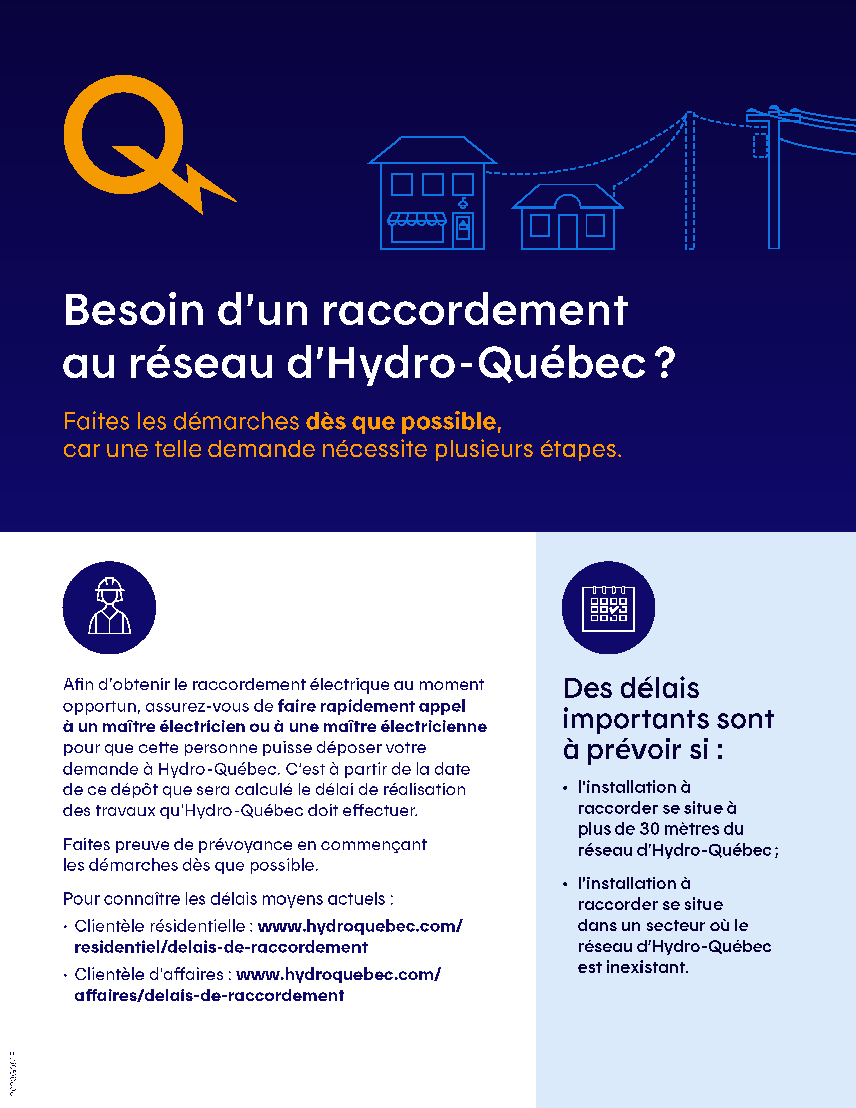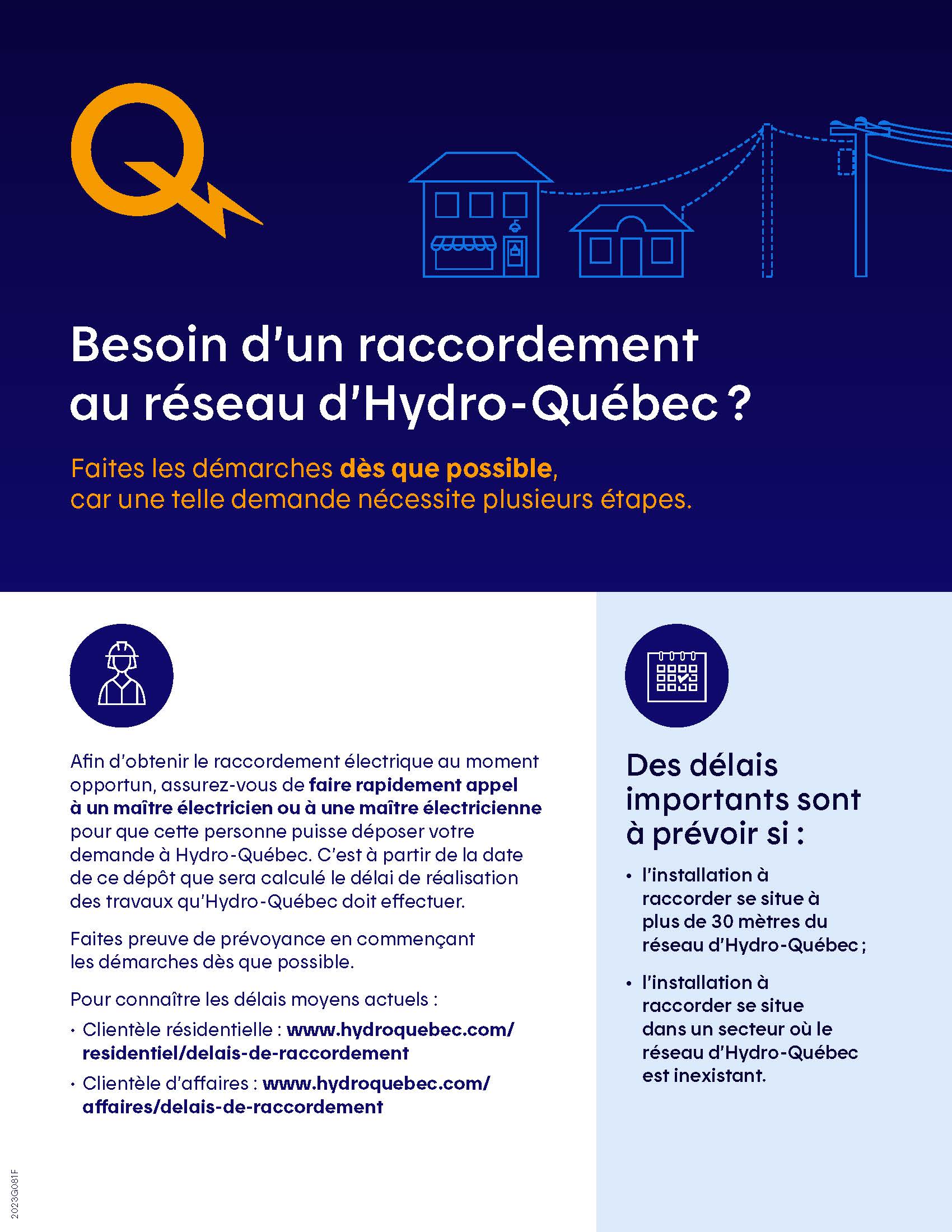 - Vérifier les délais approximatifs à prévoir selon la région où les travaux de raccordement doivent être effectués.