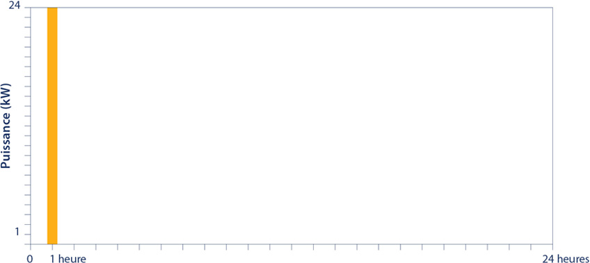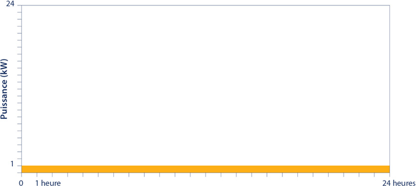 Comme le montre l’exemple suivant, il ne serait pas équitable de fonder la tarification uniquement sur les kilowattheures (kWh) consommés durant chaque période de consommation (l’énergie). En effet cela ne tiendrait pas compte des différences de coûts liés aux appels de puissance, qui peuvent varier en importance et en durée pour chaque client.