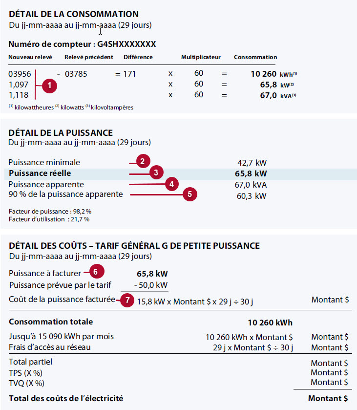 Comment lire une facture comportant de la puissance facturée au tarif G