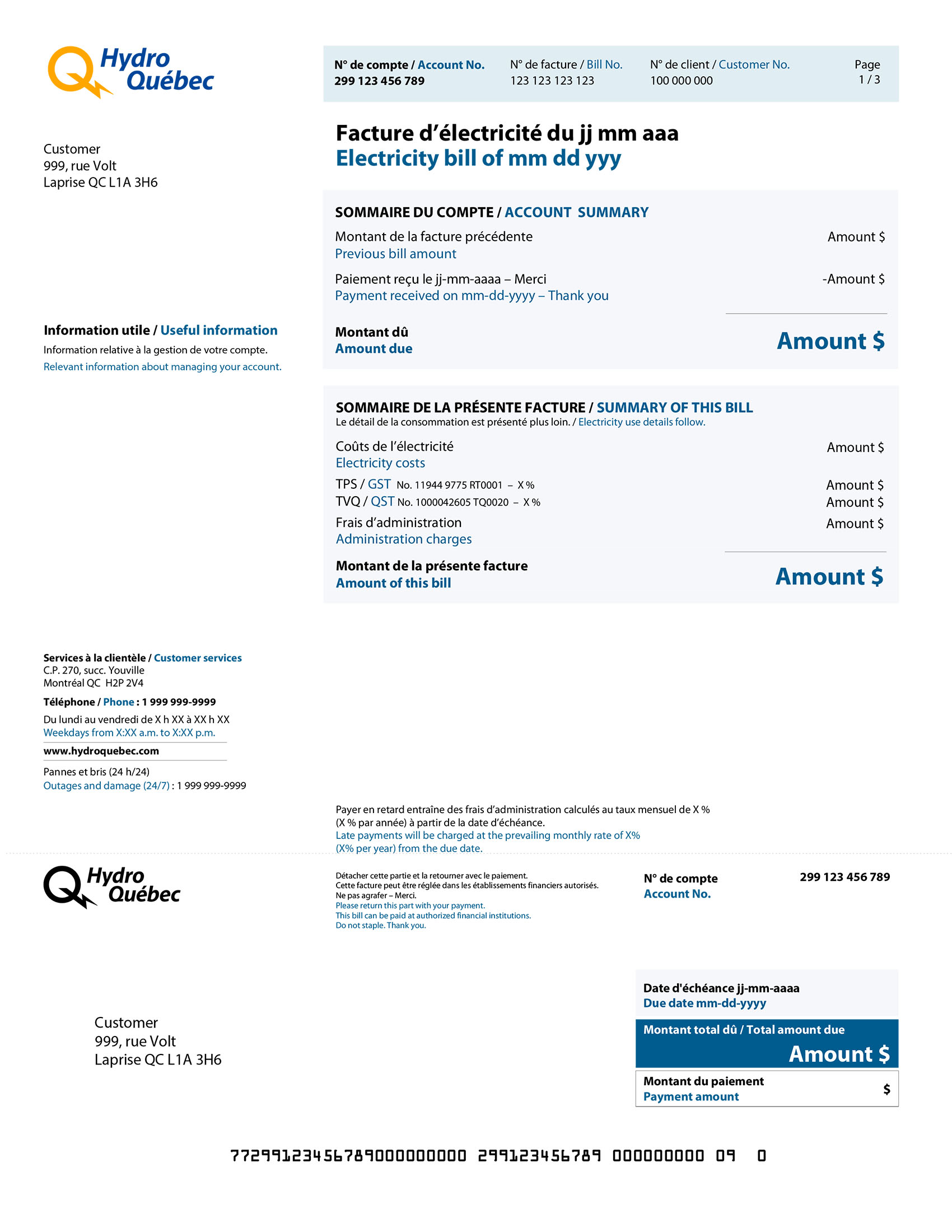 - Customer No.: Use this number to identify yourself when you contact us. You will also need your customer number and a bill number to create your Customer Space.