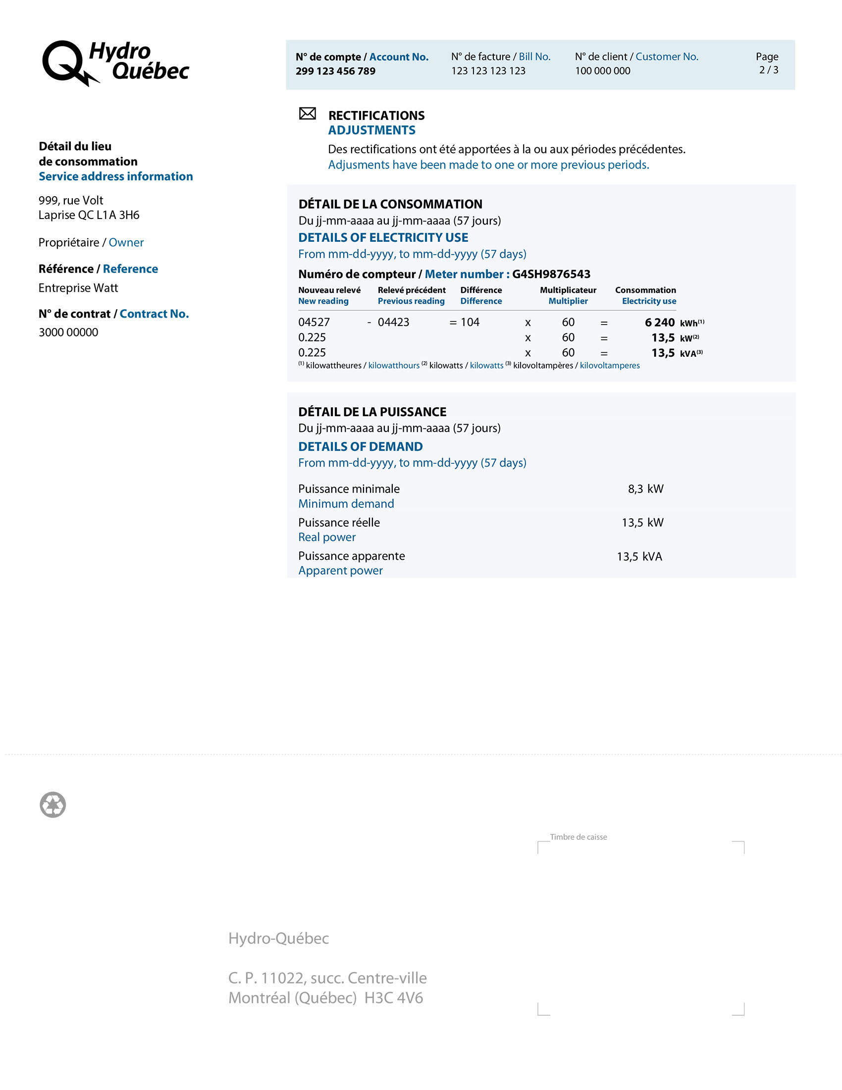 - If you have several contracts and receive a single bill, you now receive Details of electricity use for each contract.
