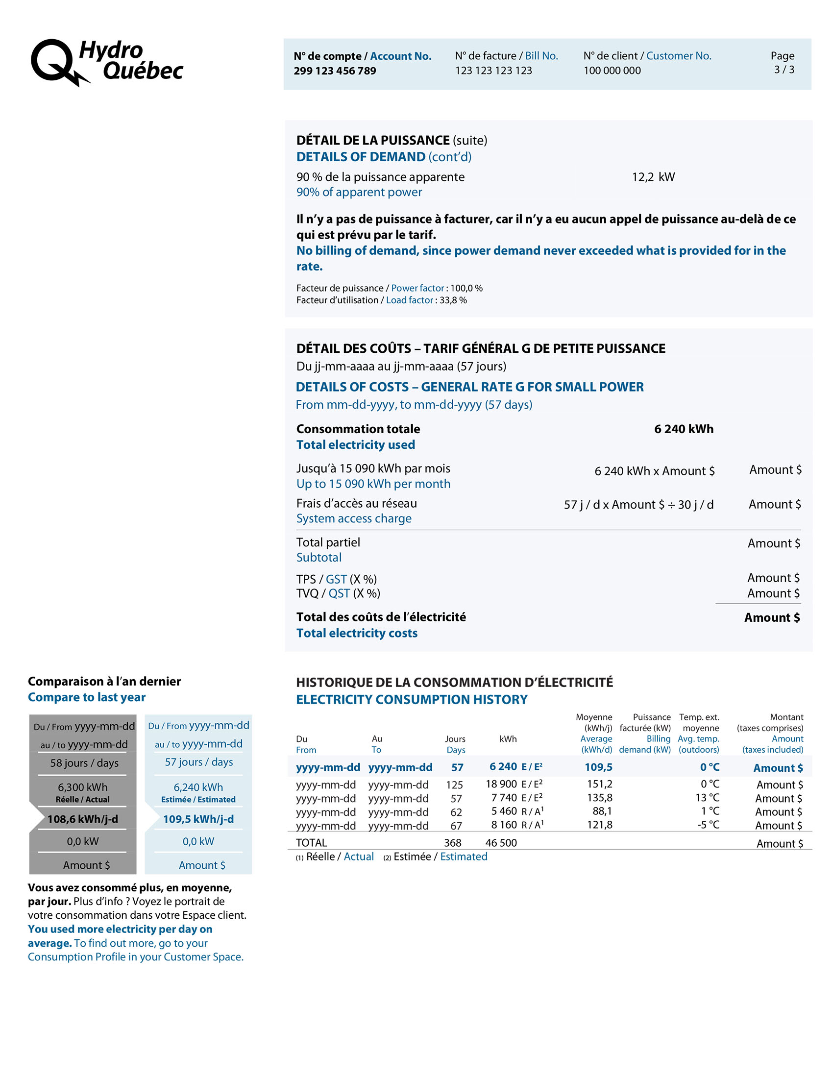 - Bill No.: Every bill has a different number. It may be useful if you contact us about the bill.