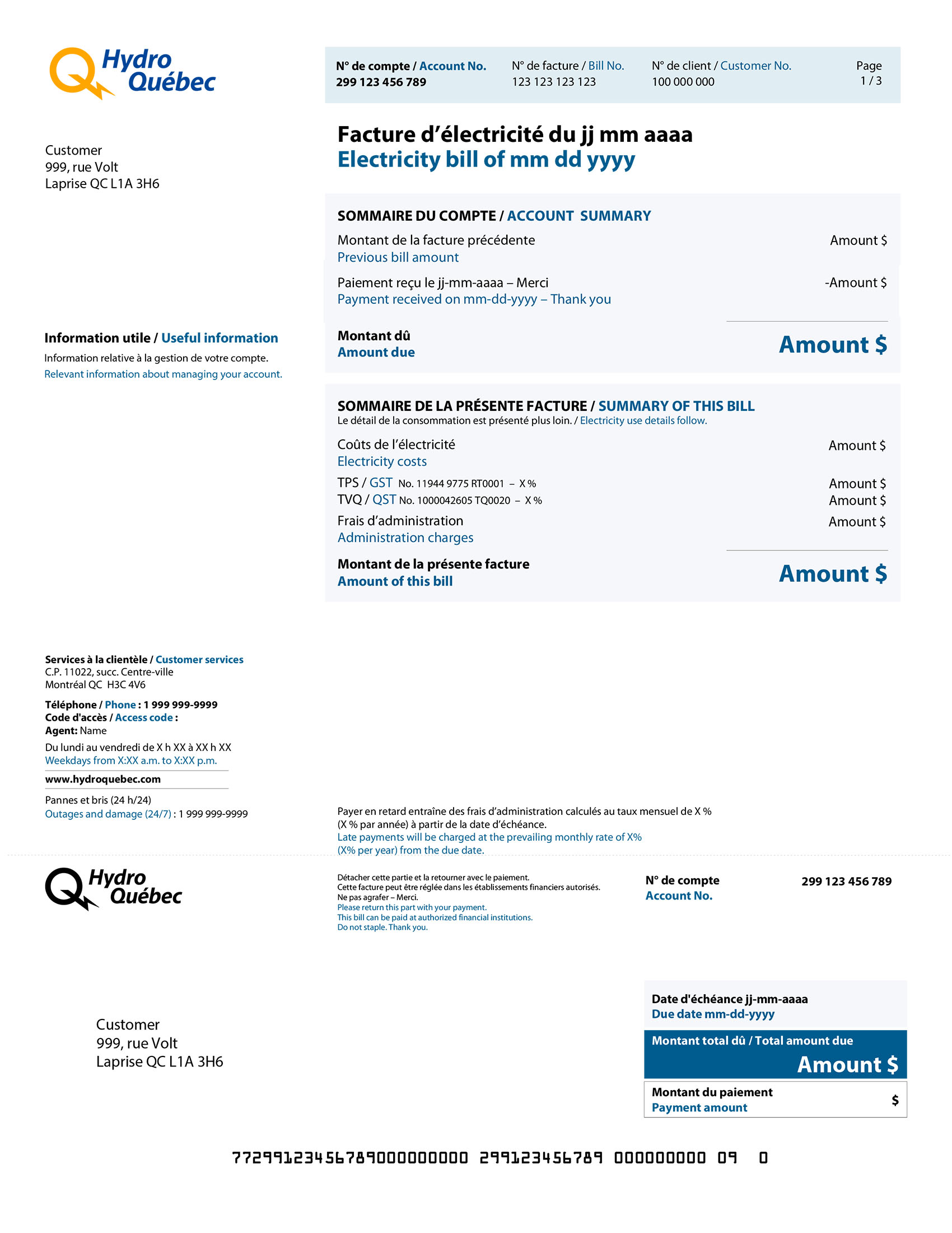 - Customer No.: Use this number to identify yourself when you contact us. You will also need your customer number and a bill number to create your Customer Space.