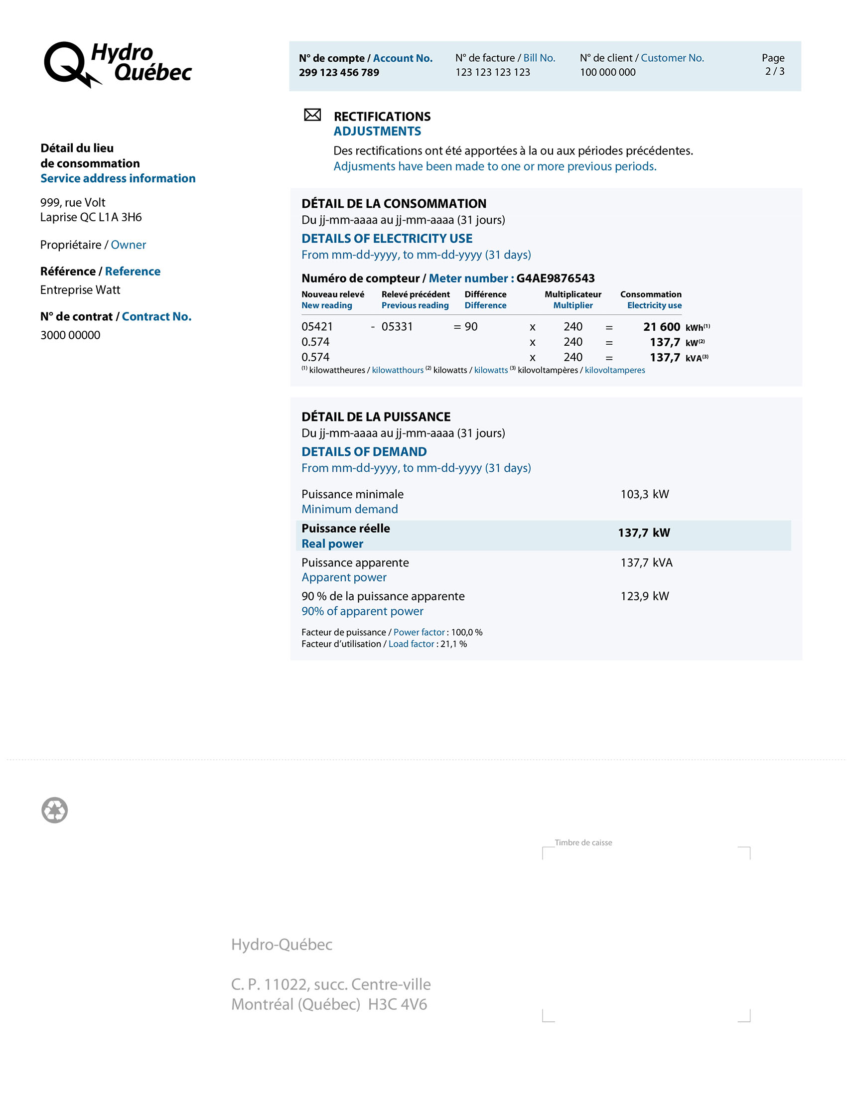 - If you have several contracts and receive a single bill, you now receive Details of electricity use for each contract.