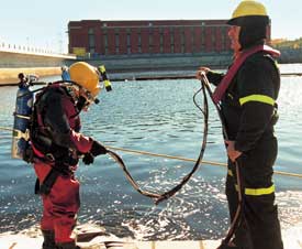 ROV-3, un robot sous-marin d'inspection adapté aux besoins des exploitants d'aménagements hydroélectriques, permet aux scaphandriers d'inspecter de façon sécuritaire les endroits difficiles d'accès.