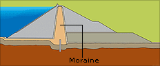 La moraine est le matériau de choix pour assurer l'imperméabilité d'un barrage. Elle consiste en des matières déposées par les glaciers. Elle forme le noyau de la plupart des barrages en enrochement d'Hydro-Québec, dont certains ouvrages de retenue du complexe La Grande.