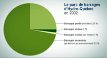 Sur les 793 grands barrages érigés au Canada, 226, soit un peu plus du quart, sont situés au Québec. Hydro-Québec exploite plus de 550 digues et barrages.