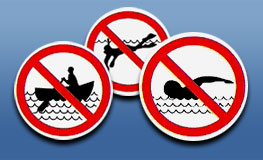 De la turbulence et des forces d'aspiration peuvent entraîner les baigneurs et les plaisanciers vers le fond. De plus, le débit de l'eau peut augmenter de façon soudaine, car on peut à tout moment actionner les groupes turbines-alternateurs ou bien ouvrir les portes de l'évacuateur, selon les manœuvres requises pour l’exploitation de la centrale.