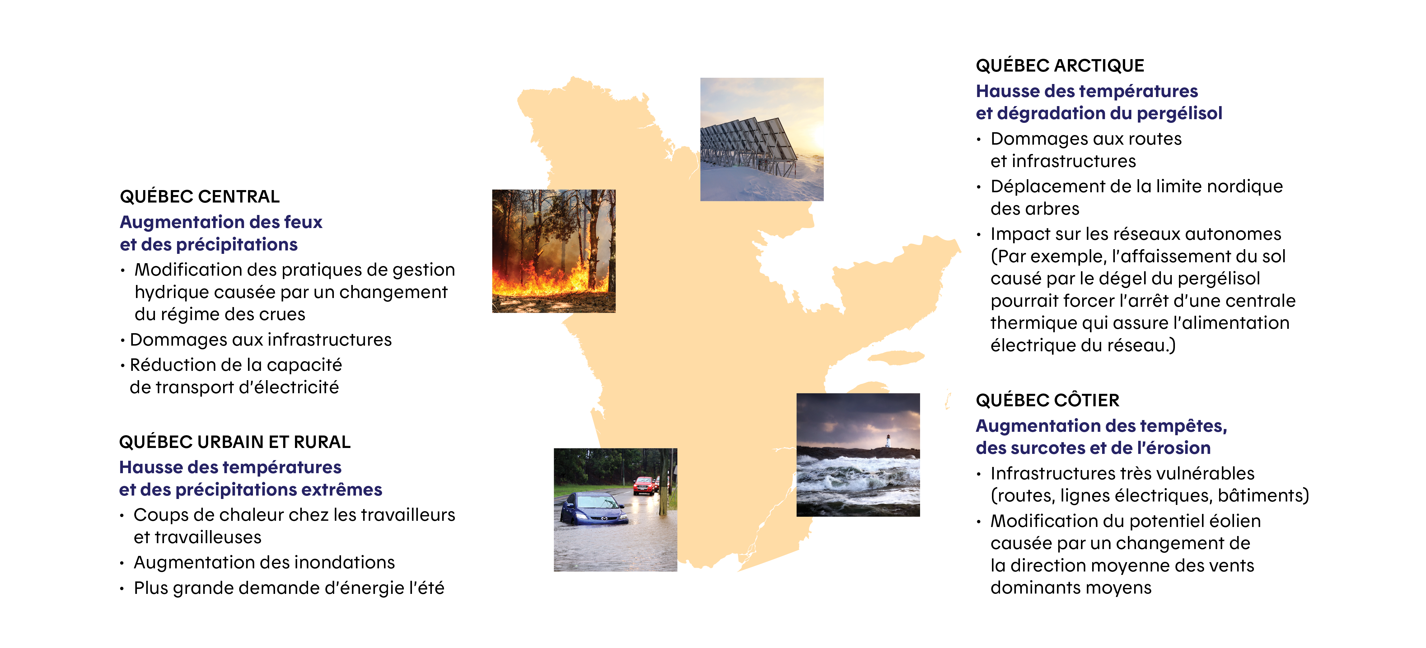 Les activités d’Hydro‑Québec sont diverses et réparties dans l’ensemble du territoire de la province. Ainsi, l’entreprise pourrait faire face à une grande variété d’impacts.