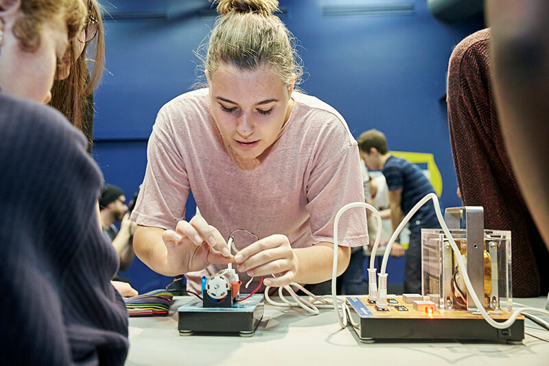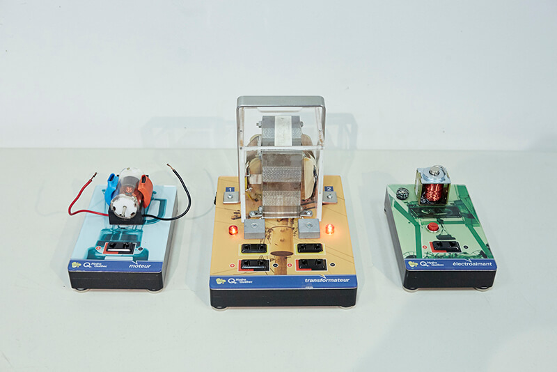 Une façon originale d’appliquer les concepts appris en classe et de les mettre en pratique. Les jeunes devront mettre leurs connaissances à l’épreuve, manipuler, expérimenter, déduire et relever des défis grâce à trois maquettes : le transformateur, l’électroaimant et le moteur électrique.