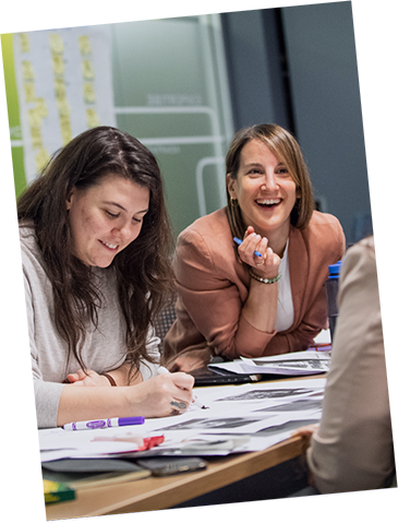 Nous utilisons une approche de cocréation formée de parcours conçus sur mesure pour chaque projet afin de susciter l’engagement de tous les participants et de toutes les participantes. Nous avons adapté nos façons de faire pour travailler efficacement en mode virtuel comme en présentiel.