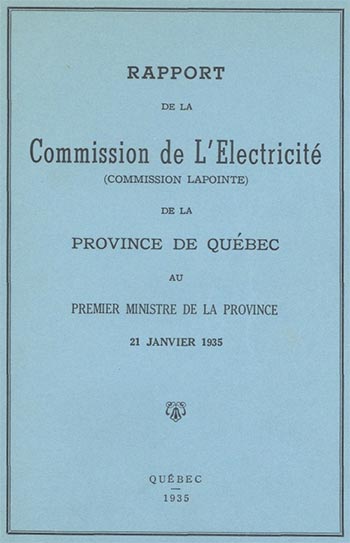 La crise économique du début des années 1930 secoue l’Amérique. L’activité industrielle ralentit, et le chômage s’installe. Les contestations se font de plus en plus vives à l’endroit des entreprises d’électricité. Le gouvernement libéral d’Alexandre Taschereau est forcé d’agir. Il crée une commission d’enquête, la Commission Lapointe, qui dépose son rapport un an plus tard. Celle-ci dénonce certaines pratiques des entreprises d’électricité, mais ne se prononce pas en faveur de la nationalisation. Elle prône plutôt la mise en place de la Commission provinciale de l’électricité, un organisme qui réglementerait tous les aspects du commerce de l’électricité.