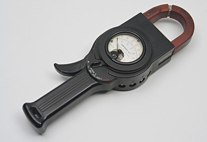 Ampèremètre analogique de la Compagnie de pouvoir du Bas-Saint-Laurent (1922-1963). La position de l’aiguille sur l’écran gradué en ampères indique l’intensité du courant électrique.
