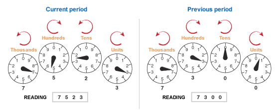 To calculate your consumption, Hydro-Québec subtracts your previous meter reading from your current reading.