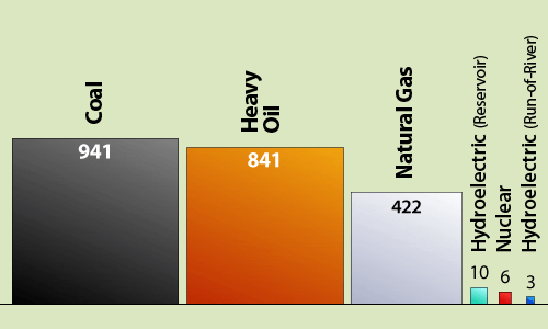 *Taken from a study presenting typical North American results for the same quantity of power generated. Each of the GHGs under study was converted into its CO2 equivalent. This life-cycle assessment, conducted in 2001 by Hydro-Québec, takes into account all the emissions of an energy system, from construction to removal from service.