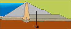 Till is the loose sediment deposited by glaciers, and it's the perfect material for making a dam watertight. It forms the core of most rockfill dams owned by Hydro-Québec, including some of the retaining structures in the La Grande complex.