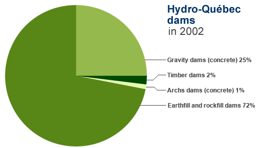 Of Canada's 793 large dams, 226, or just over one quarter, are located in Québec. Hydro-Québec operates more than 550 dikes and dams.
