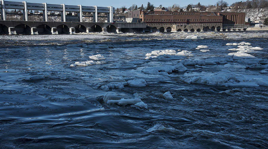 Quelques jours avant le début de la crue printanière, nous abaissons le niveau d’eau en amont de la centrale pour éliminer son incidence sur l’écoulement de la rivière et limiter l’effet de refoulement à fort débit. En quelque sorte, nous rapprochons la rivière de son état naturel, soit celui d’avant la construction de la centrale.