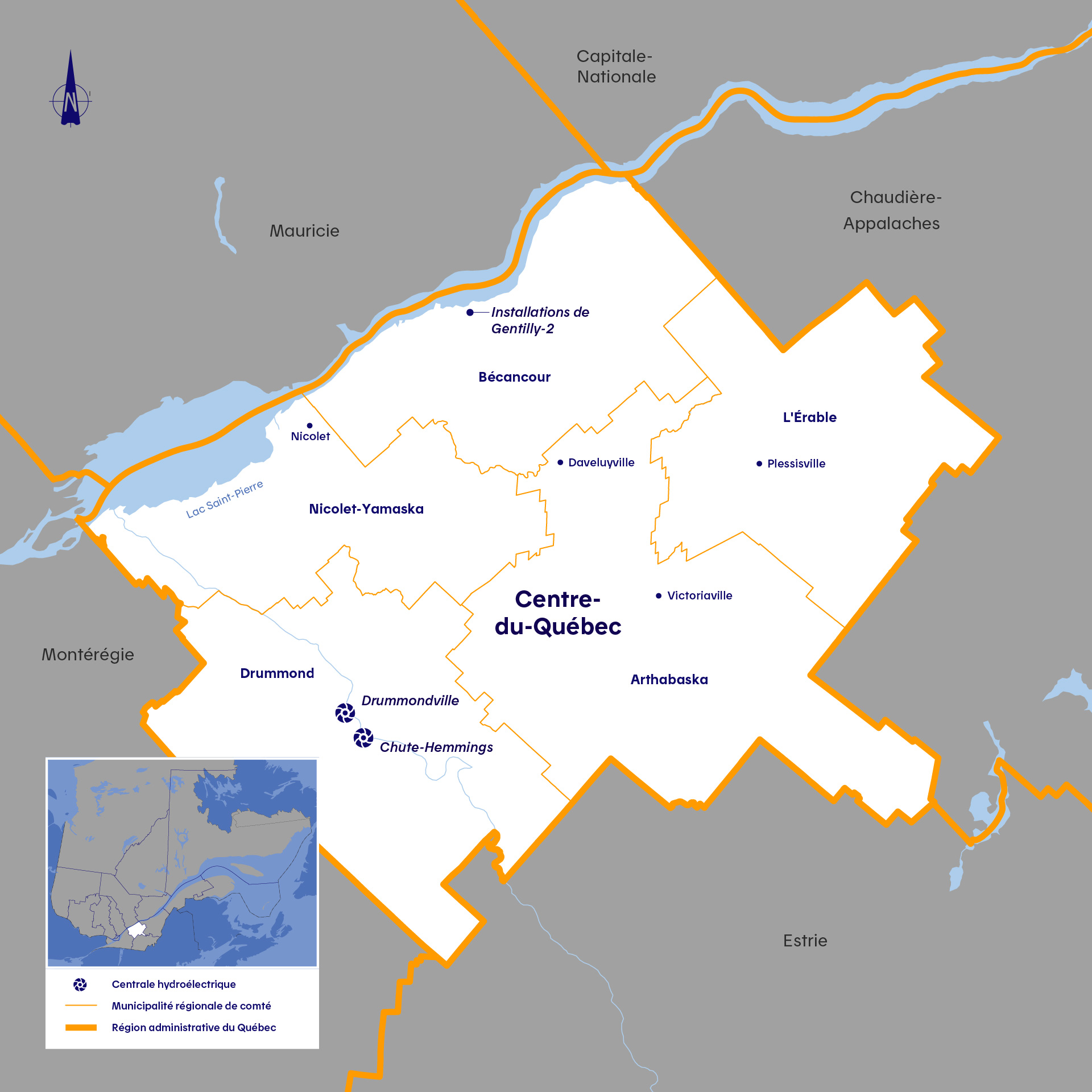 Dans le Centre-du-Québec, Hydro-Québec exploite deux installations hydroélectriques sur la rivière Saint-François, soit la centrale de la Chute-Hemmings et la centrale de Drummondville. Ces centrales au fil de l’eau ne permettent pas de stocker l’eau. Elles doivent laisser passer les apports naturels qui sont, par définition, imprévisibles.