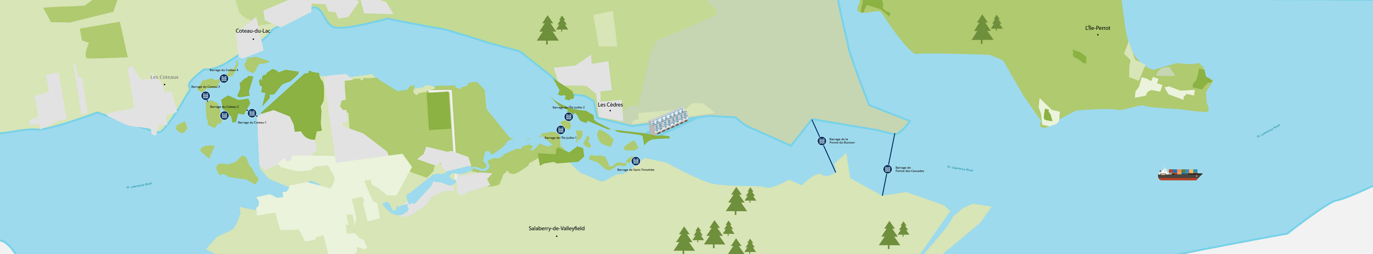 It may flow toward the generating units of Les Cèdres station, where it will generate hydropower, or toward Île-Juillet dams followed by Saint-Timothée basin and dam.