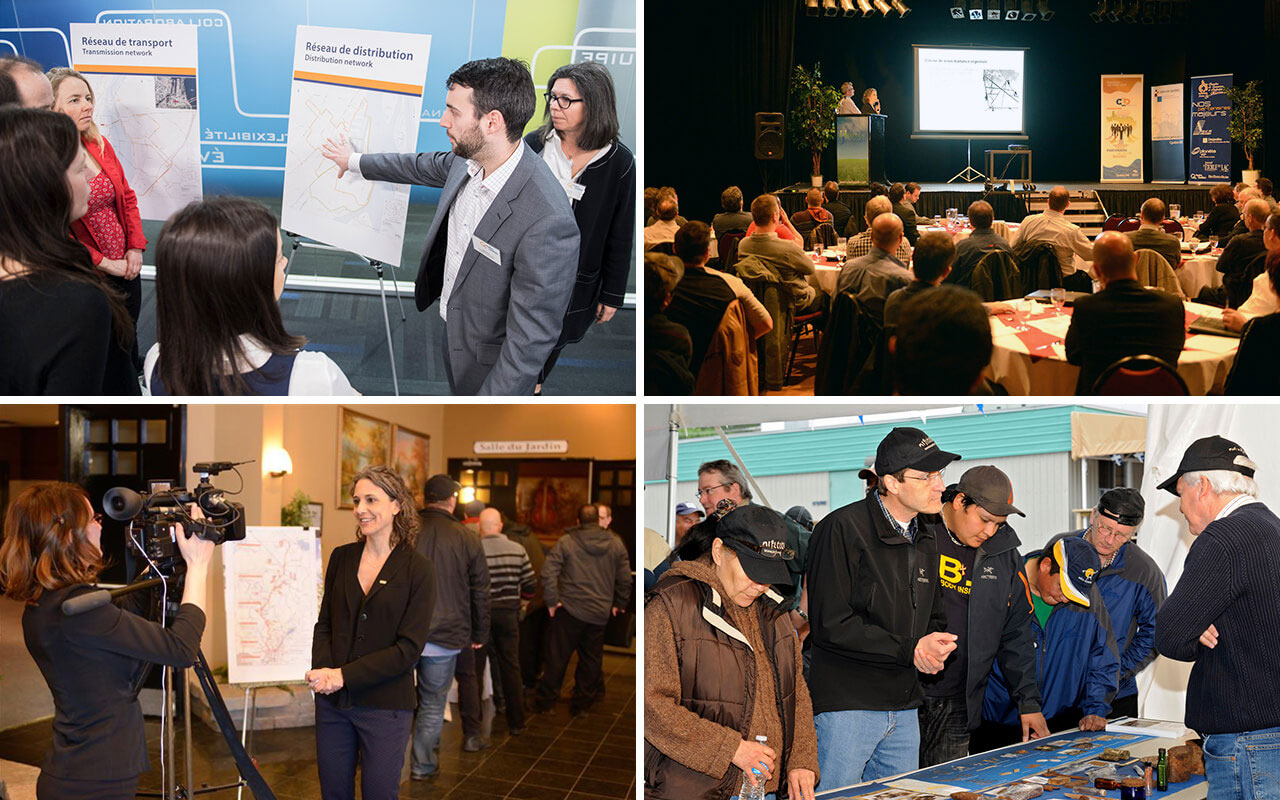 L’équipe utilise différents moyens de communication tout au long du projet afin d’avoir des échanges constructifs avec les communautés concernées. Selon les besoins, elle peut organiser des rencontres publiques, publier des annonces dans les médias locaux et sur les médias sociaux, lancer un site Web, intervenir à la radio, envoyer des infolettres électroniques ou papier, mettre en place une ligne téléphonique réservée ou mener des consultations en ligne.