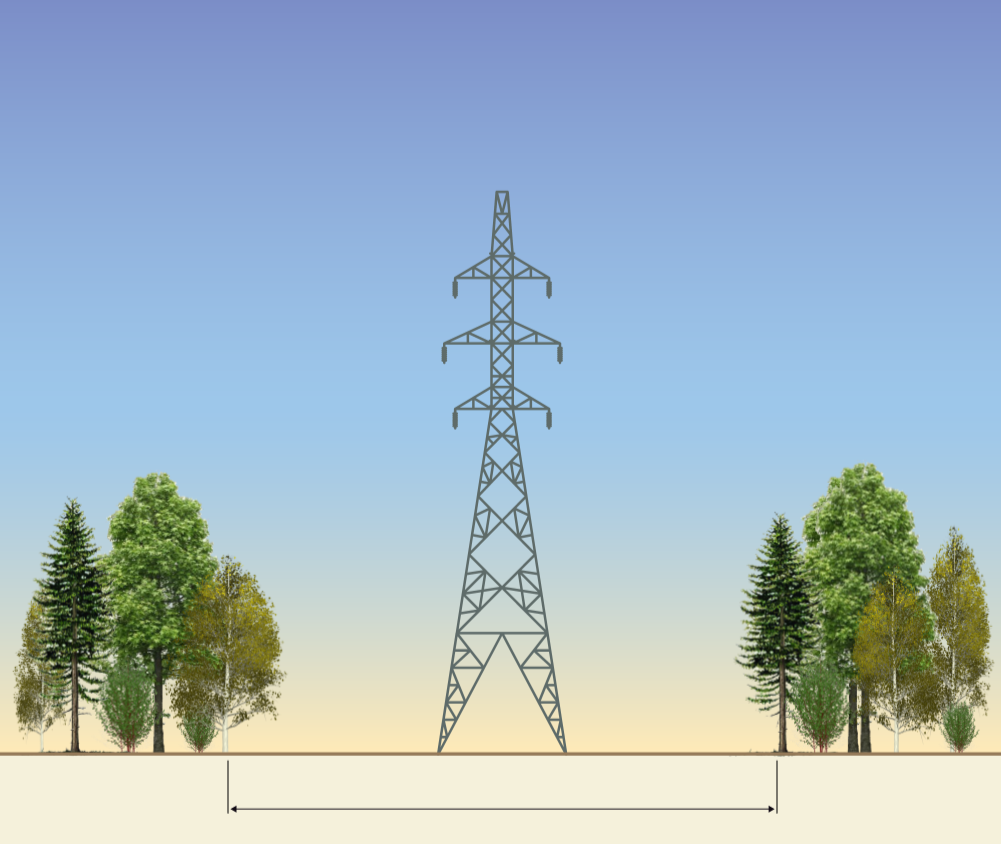 Pour des raisons techniques et de sécurité, la tension électrique détermine la hauteur des pylônes ainsi que la largeur de la bande de terrain devant être dégagée sous la ligne et de part et d’autre de celle-ci, qu’on appelle emprise.
