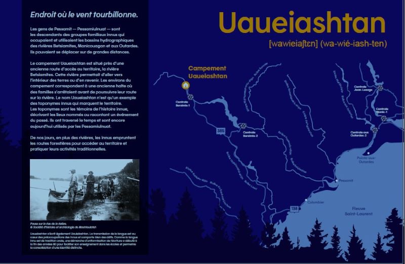 Cette œuvre de l’artiste atikamekw nehirowisiw Eruoma Awashish (née en 1980) évoque le concept du waskamatisiwin, ou « vivre en toute conscience dans l’équilibre du cercle ». Sa forme circulaire suggère que l’homme n’est pas centre et maître de la création, mais se trouve bien à l’intérieur du cercle, comme tous les êtres vivants dont il dépend, tandis que le motif du cœur — composé de piquants de porc‑épic — symbolise le tambour qui résonne et qui rassemble.