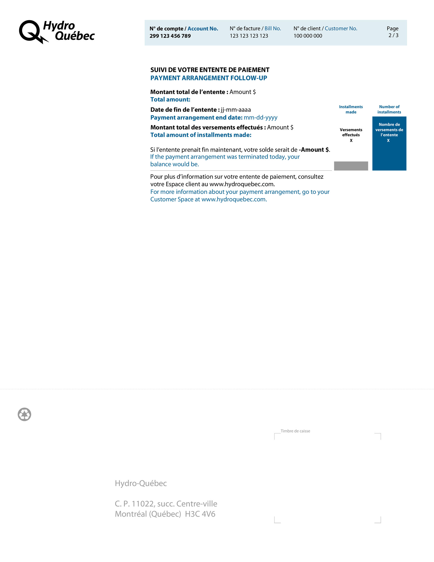 To find out more about your payment arrangement, visit your Customer Space.