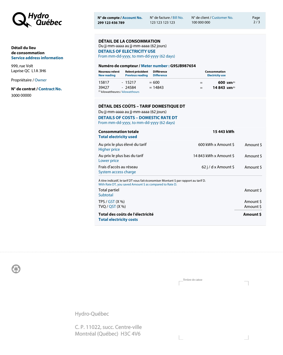 Every bill is different. That’s because the total amount due depends on how much electricity you’ve actually used.