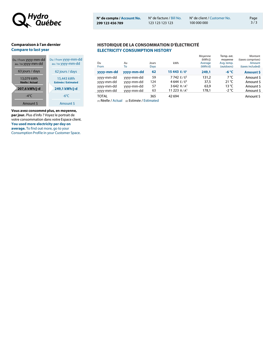 Information on your electricity use over the past year. The table now gives the average outdoor temperature in your region to show how the weather affects your electricity use, if you heat with electricity.