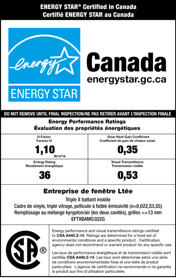 Please note that Hydro-Québec does not offer cash rebates on the purchase of ENERGY STAR® certified windows and patio doors.
