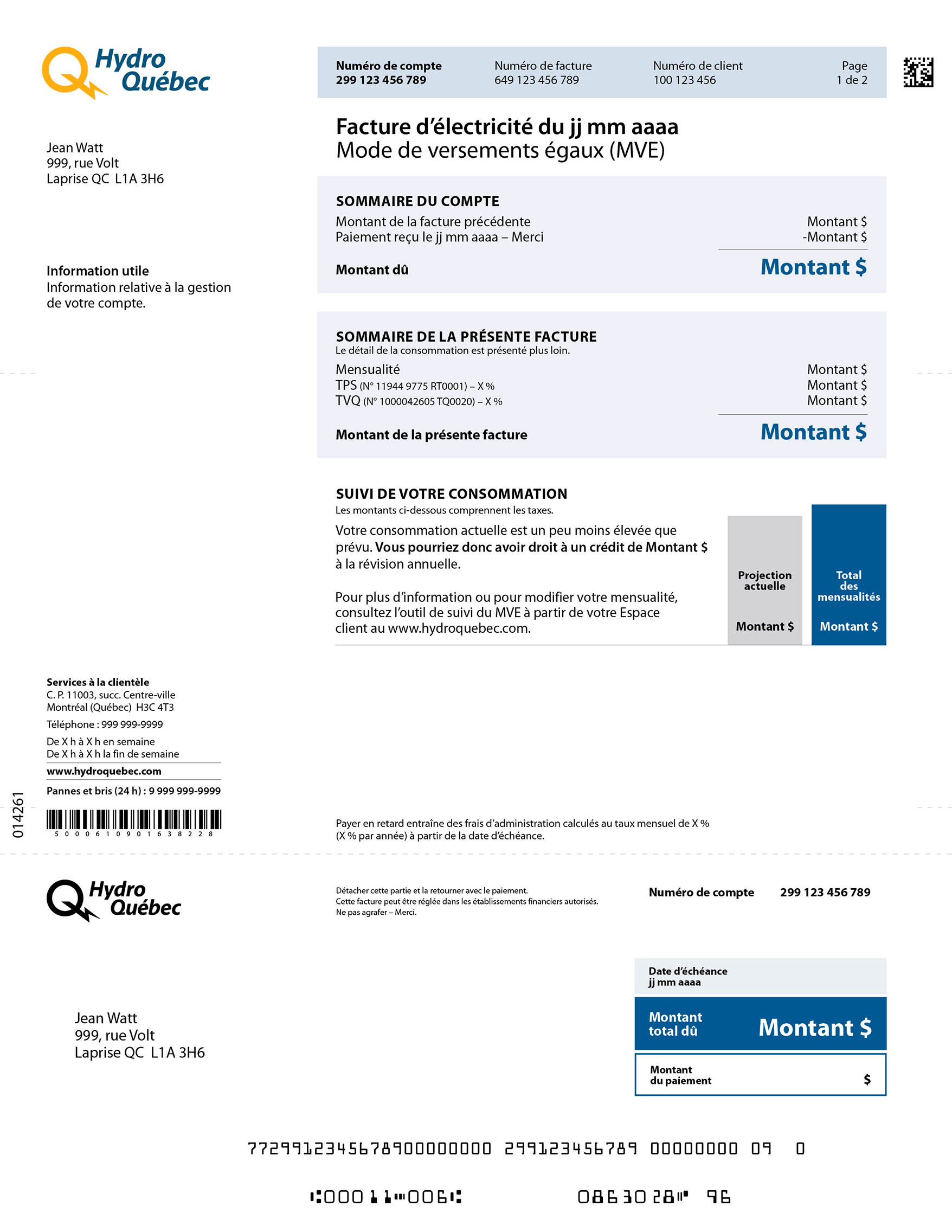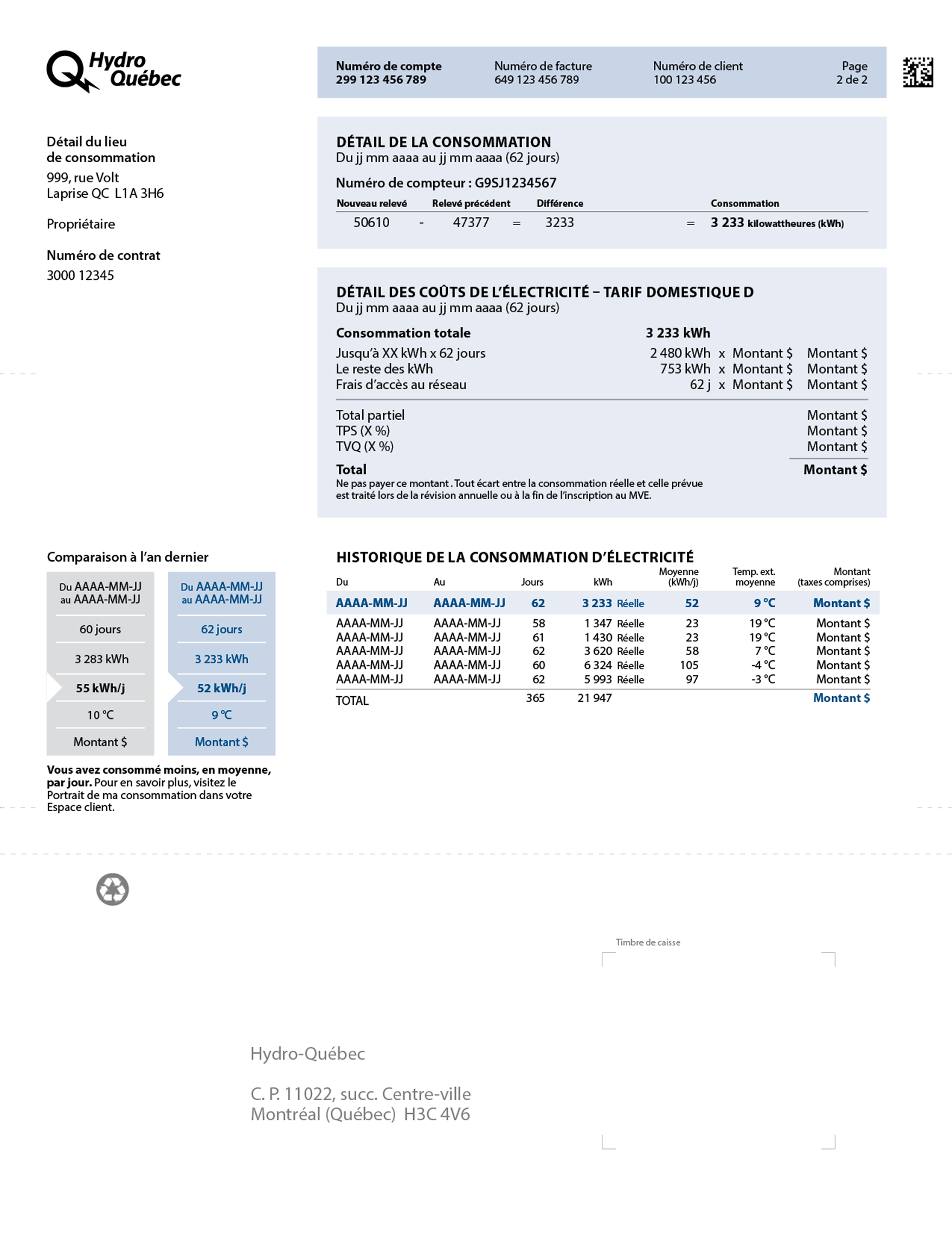 Note : Cette information vous est présentée tous les deux mois, puisque votre consommation réelle est calculée aux deux mois en fonction du relevé du compteur.