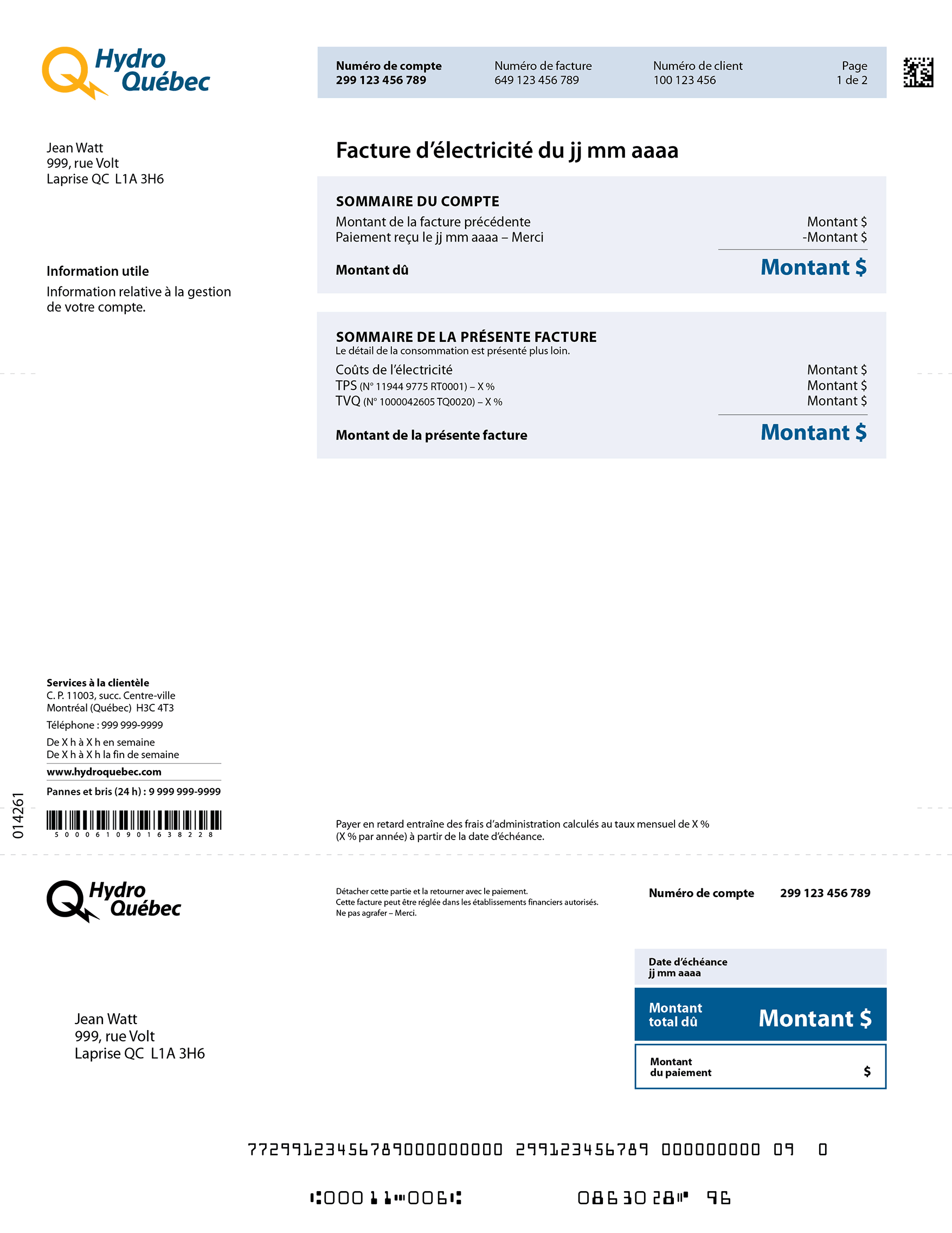 Vous devez retourner ce bordereau avec votre paiement si vous réglez votre facture par la poste.