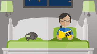 Une femme lit sous sa lampe de chevet, ce qu’il devrait faire pendant 100 h pour consommer 1 kWh.