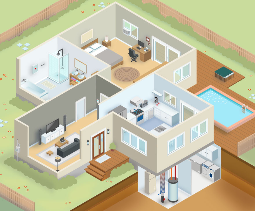 Visitez chacune des pièces de la maison pour découvrir les principales sources de consommation d’énergie et vous mettre sur la piste des bonnes habitudes à prendre.