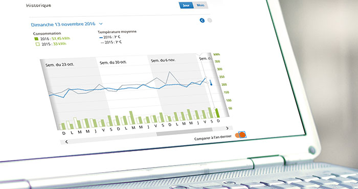 Suivez votre consommation d’électricité à l’heure près grâce au compteur communicant. Voyez vos données horaires, quotidiennes, mensuelles et annuelles, et comparez-les !