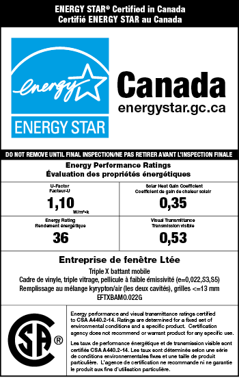 Au Canada, le rendement énergétique (RE) des portes et fenêtres est vérifié en fonction de la norme de fabrication CAN/CSA A440.2-14 de l’Association canadienne de normalisation (CSA).