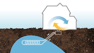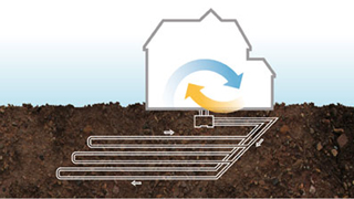 Les systèmes géothermiques mettent à profit la température ambiante à quelques mètres sous la surface du sol, soit 10 °C en moyenne au Québec. Ainsi, l’été, la thermopompe extrait l’air chaud de la maison, transfère la chaleur au sol puis retourne l’air refroidi dans la maison, alors qu’en hiver, la thermopompe extrait la chaleur emmagasinée dans le sol et l’achemine dans la maison.