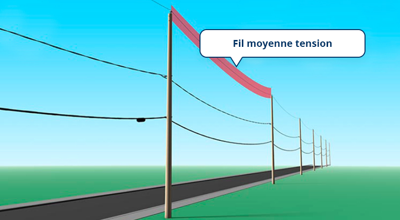 Ne jamais s’approcher ou approcher quoi que ce soit (ruban à mesurer, outil, échafaudage, matériau, etc.) à moins de trois mètres d’un fil moyenne tension.