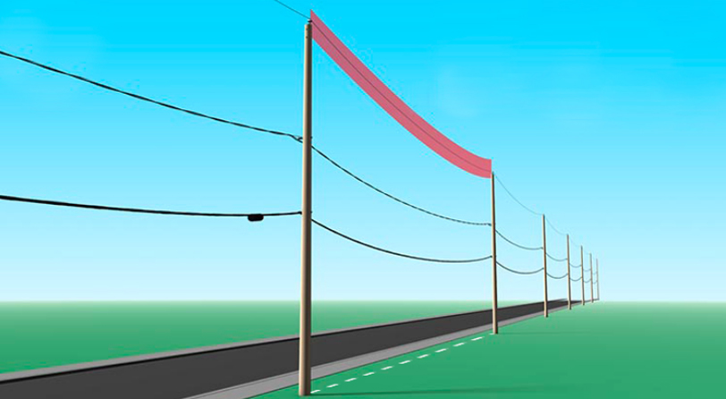 Déposez une corde sur le sol, sur la ligne imaginaire reliant les deux poteaux qui supportent ce fil moyenne tension.