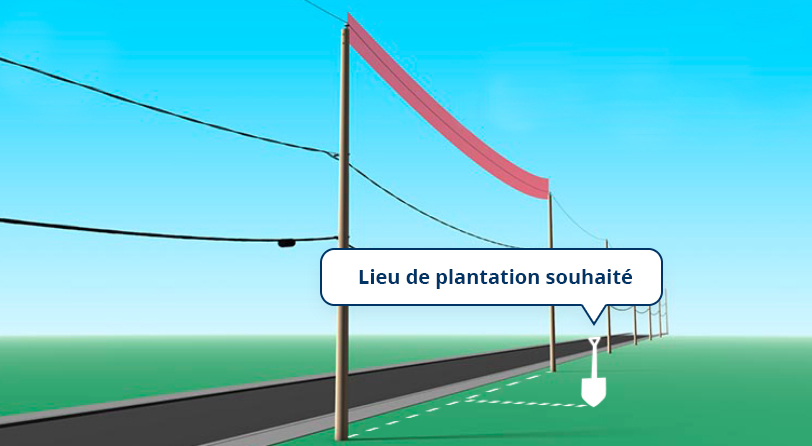 Repérez à l’œil le fil moyenne tension le plus près du lieu où vous souhaitez planter un arbre ou un arbuste.