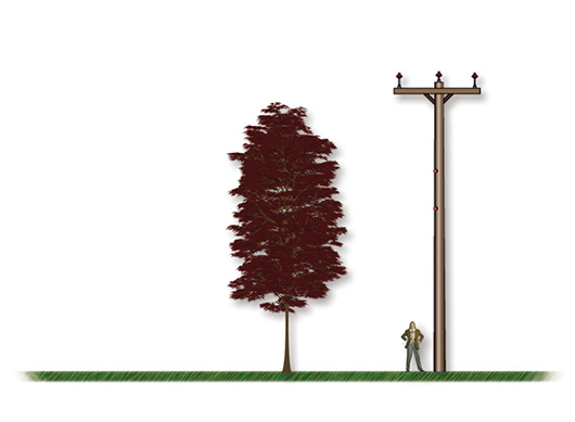 Le fait qu’un arbre ou un arbuste respecte la distance de plantation sécuritaire ne garantit pas que nous n’aurons jamais besoin de l’élaguer pour dégager des fils moyenne tension. Cependant, il est certain que de telles interventions seront minimes... s’il y en a.