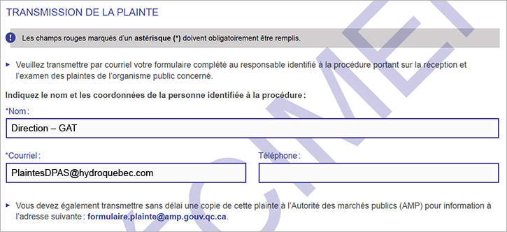 Consultez la Procédure de réception et d'examen des plaintes dans le cadre des contrats publics [PDF 793 Ko] pour vérifier si votre plainte répond aux critères définis par la loi.