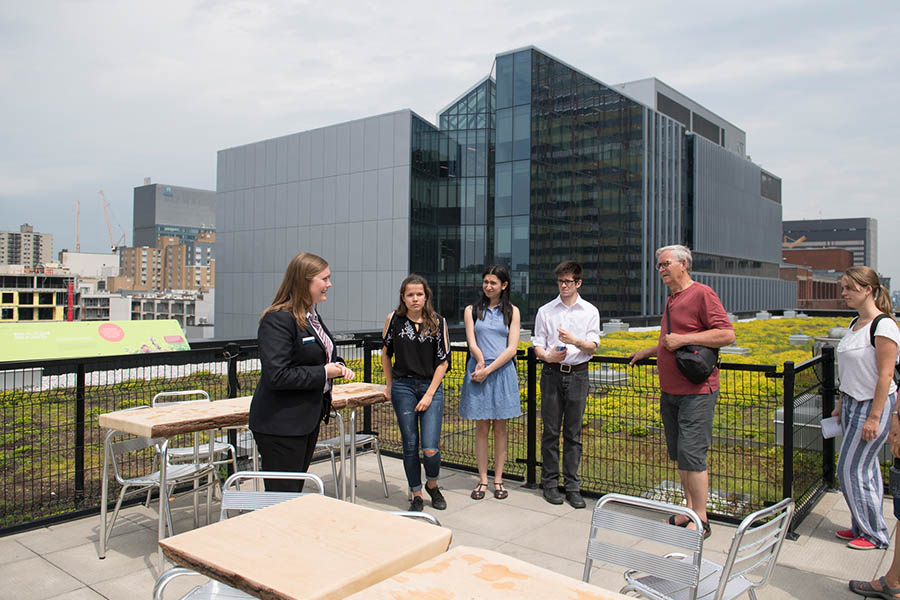 Située au cœur du Quartier des spectacles au centre-ville de Montréal, on dit de moi que je suis une maison pas tout à fait comme les autres. Je suis en effet le premier bâtiment du Québec à avoir atteint le niveau Platine NC, soit la plus haute distinction que l’on peut recevoir dans le système de reconnaissance des bâtiments écologiques LEED®.