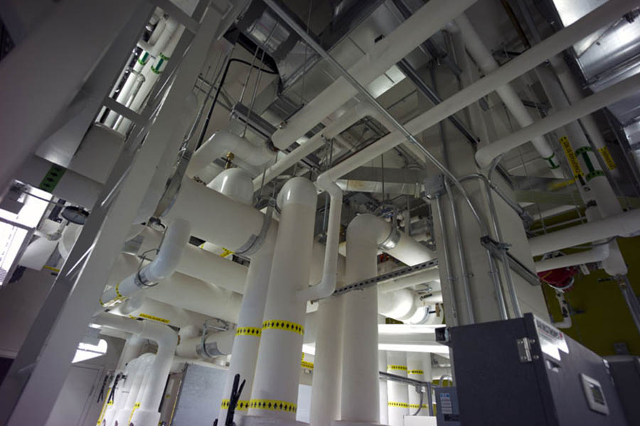 • privilégié un système de chauffage et de climatisation géothermique, qui tire sa chaleur de 28 puits de 153 mètres ;